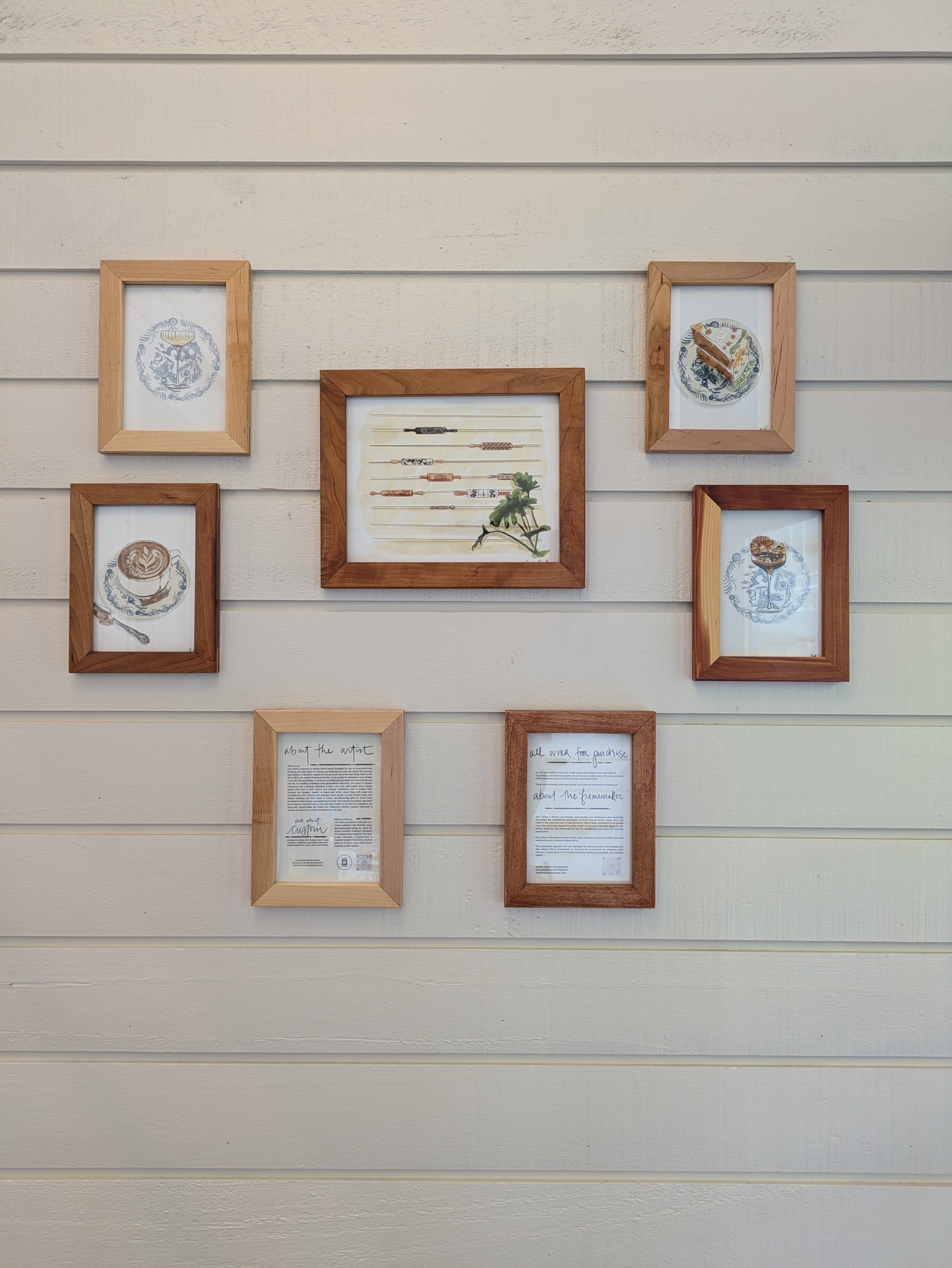 All framed pieces in this collection will remain on the Ellie’s walls and coordination / shipment will happen after the conclusion of the residency at the end of August 2025.